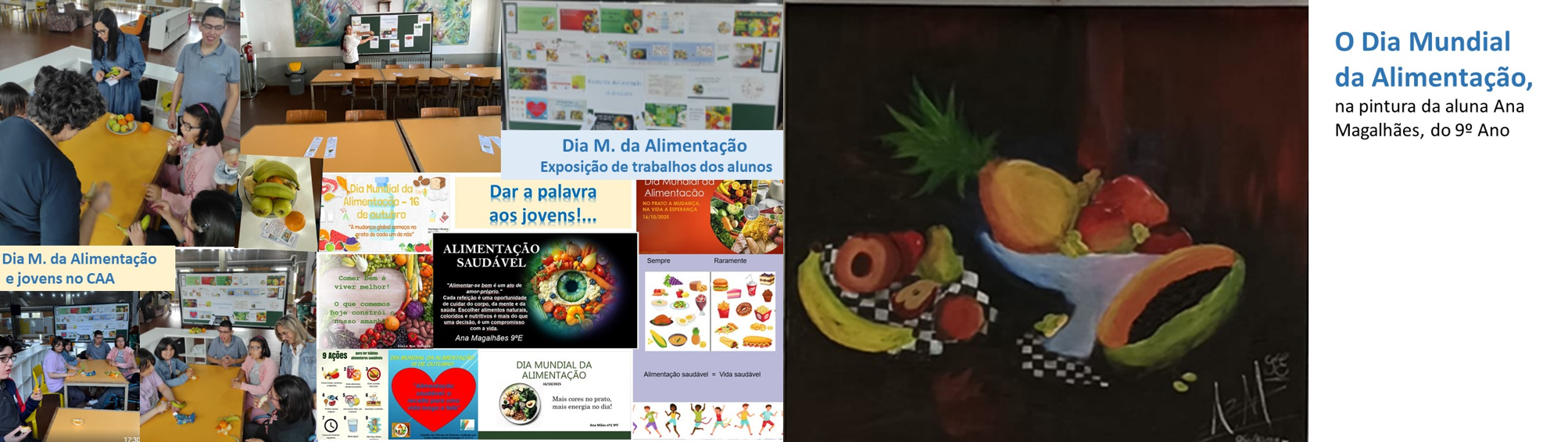 Para assinalar a comemoração do Dia Mundial da Alimentação, os alunos da turma 10.º P6 do Curso Técnico Auxiliar de Saúde foram incentivados pelos professores de Matemática, Biologia e Educação Especial a apreciar e partilhar uma refeição no refeitório da escola. (ler mais...)